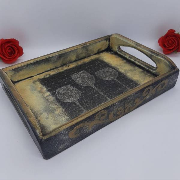 Tava din lemn decorata manual. Dimensiuni – 25cm/18cm